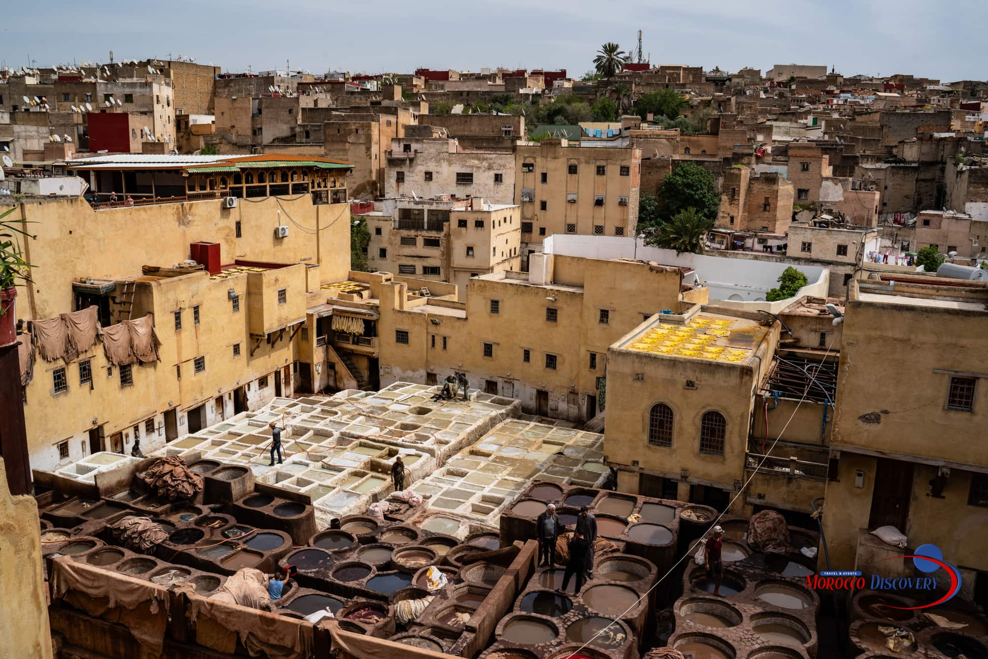 Today you will explore the mystical and magical Fez, a remarkable UNESCO world heritage site, and home to the oldest and largest medina in North Africa! The city was once the capital of Morocco and is still widely viewed as the cultural epicenter of the country. The city remains Morocco's spiritual heart thanks to the strong ties to religious schools and Islamic scholars. Its car-free medina has also remained a crossroads for trade and a center for teaching the traditional tradecrafts of Morocco such as intricate woodcarving, zellige tilework, and hand wrought metalsmithing. Your guided tour will start from the Royal Palace admiring its seven imposing front gates, surrounded by fine tilework and carved cedar wood. Built in the 1960s, they're masterpieces of modern craft work. You visit Medersa Bou Inania, the most architecturally refined of Fez’s theological colleges was built by the Merinid sultan Bou Inan between 1351 and 1357. You will visit Nejjarine Museum of Wooden Arts & Crafts wonderfully restored early-18th-century funduq (inn used by caravans), the former rooms for travelling merchants are given over to displays of fine woodwork from across Morocco. You will explore Chouara Tannery, one of the city’s most iconic sights operating since at least the 16th century. Visit the Jewish quarter, Mellah created in 1438, the first official Jewish district. At its peak, some 250,000 Jews lived in the area south of Bab Semmarine. Today, the remaining handful have moved to the Ville Nouvelle, but it's still interesting to see traces of the community in the buildings. Here in the Mellah you will see Ben Danan Synagogue built in the 17th century to serve the megorashim (Jews descended from those expelled from Spain), this synagogue is trimmed in pretty herringbone green tiles, turquoise octagonal pillars and glowing chandeliers. The rest of the day is at leisure to relax at your hotel and spend the overnight with breakfast.