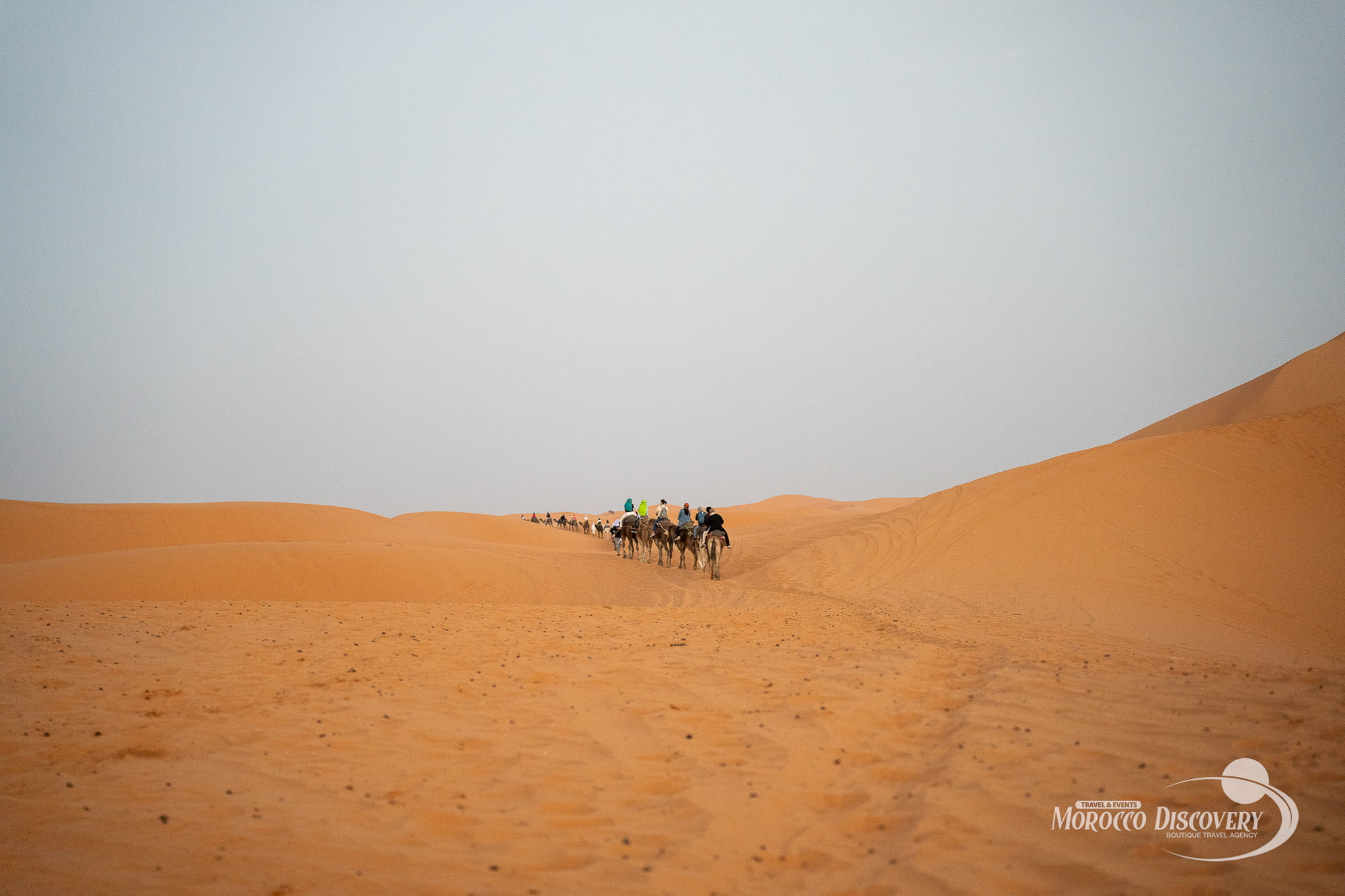 Today you will enjoy an adventure through the vast expanse of the Moroccan Sahara. Explore the dunes on a camel, a Jeep tour or an exhilarating ATV adventure, and witness the stunning desert landscape from a unique perspective. Meet the nomadic tribes that call the Sahara home and share a cup of traditional mint tea with them, gaining insight into their ancient traditions and way of life. Do not miss the chance to taste the delicious Medfouna Berber pizza, a local delicacy that will leave your taste buds wanting more. We arrive to the spectacular Merzouga dunes where sand dunes signify the start of the mighty Sahara Desert. We leave our vehicle and take a camel ride into the desert to a desert camp. To seal this as an experience of a lifetime. Spend the night in the desert in Berber tents, the ultimate glamping feeling! Add endless starry skies and music around a campfire and the picture is complete. You should not definitely miss this amazing experience in the desert during your tour of Morocco!